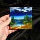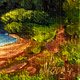 画夜河岸。 帆布上的10厘米x10厘米油画。 100%来自俄罗斯手工制作。 它以15厘米x15厘米的手工框架出售。 夏季景观。 . 原来的油画。 来自艺术家Marina Mamonchik。
