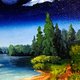 夏季景观。 画夜河岸。 它是在一个框架出售 - 海报/装饰画/版画 - 棉.麻 蓝色