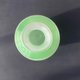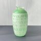 The yellow-green colored glass is cooled after being blown into a cup shape,