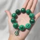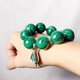 设计师严选**顶级孔雀石**,精工磨制体硕圆珠(20mm),宝石色彩正而浓艳,**缠丝**色带优美,呈现**双天眼**纹理,象征**智慧正气、趋吉避凶**,不仅大器美丽,寓意平安吉祥,值得收藏。