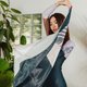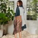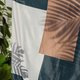 - Silk scarf with tropical shadow graphic in warm earth tone color way