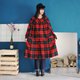 Description: F3155[Vintage洋装](意大利制)红色绿色格纹毛料双大口袋A字版型长袖古着洋装