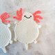 Crochet coasters in the shape of a cute axolotl. Set 4. Diameter 9,5 сm / 3,74 inch.