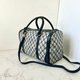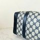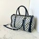 【LA LUNE】【附肩带】中古二手Gucci蓝色老花波士顿包斜背单肩侧孭皮革手袋