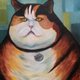 可爱的印花布猫油画肖像。是您的托儿所、儿童房或客厅的完美装饰,可增强您的日常心情。