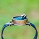 以深邃而美丽的森林为创意的望着蓝绿色的彩色玻璃池塘的青蛙款对表。