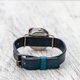 与群青色的皮革表带相搭配,更加凸显出深蓝绿色玻璃的美感。