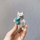 100% handmade piece by piece. In bag or jar that the cats carry can put some tiny flower or leaves for decorate.