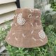 天然染色棕色渔夫帽,手工刺绣鱼骨和池塘。中等尺寸,不是很大。买一件来保护您免受阳光照射!