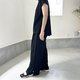 下摆采细致的弧形剪裁,搭配斜裁线拼接,勾勒出优美的身形。