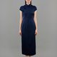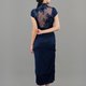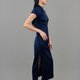 孔雀藍色蝴蝶花旗袍,专为那些追求华丽风采的人而设计。采用弹性丝绒剪裁而成,无袖和露背设计,性感而不失優雅;腰部有褶皱设计,能够帮助遮掩你的肚子。旗袍最初是为探戈派对而设计。翡翠扣子增添了东方魅力,高开叉营造出整体造型的微妙性感。搭配高跟凉鞋,绽放时尚魅力。