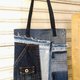 拼接手工车缝,原有牛仔裤口袋就是外层收纳袋,适合放A4大小文件。