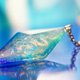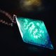 蓝色的深浅层次、闪烁光芒,以及在黑暗中的发光样貌。这款美丽的八面体吊坠结合了所有元素,营造出独特的世界观。存在感十足的大型八面体造型内部,完美兼具了色调与光辉的渐层变化。正反两面皆能欣赏到不同表情,是世上仅有一个的原创吊坠。