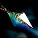 作品ID:2942 / 美式玻璃 / 约70×34×20mm / 青绿色、蓝色、青紫色系 / 偏光玻璃加工 / 渐层加工 / 气泡加工 / 蓄光(夜光)加工 / 雕刻加工 / 不锈钢链 60cm / -