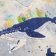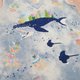 手工刺绣连衣裙、亚麻面料、鲸鱼、海洋、海洋、幻想