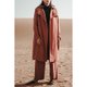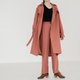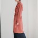 - 南瓜红色 JANE中长款风衣 两色极简圆环系带翻领宽松女风衣士外套