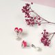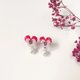 < 手绘三色堇桃红色鸳鸯耳后棉棉珠耳环 耳针 >