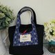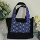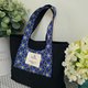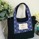 北欧风格黑色蓝色花图案/手提包/全棉帆布/手工制/肩背包/侧背包