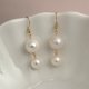 中国浙江山下湖是世界上最大的天然淡水珍珠养殖基地,其淡水珍珠产量占世界总量的95%,其中不乏高品质、高性价比的产品。纱织小姐甄选出一对7~8mm和一对12~13mm的天然淡水珍珠,以纯手工方式将珍珠以上大下小的形态连接,让两个联动点形成优雅又并不嚣张的姿态联动摇摆,形成传统而温婉的环佩叮当之势。这四枚珍珠为冷白色强光炫彩,虽有瑕有生长纹,却瑕不掩瑜,难以掩饰整体的佩戴效果,既适合古典装扮,也适合日常佩戴。愿意助您携秋水揽星河。