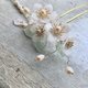 主要材料:铜质配件、半宝石、天然淡水珍珠、东陵玉雕刻叶片。