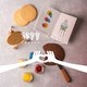 可食用调色盘饼干 x1、可食用饼干画布 x3、可食用调色奶油霜 x4、画架 x1、刮刀 x1、说明本 x1