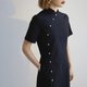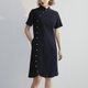 黑色条纹肌理旗袍改良短款连衣裙设计感夏弹力高腰短裙 - 洋装/连衣裙 - 棉.麻 黑色