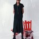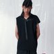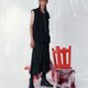 此款背心将台湾人喜爱着用的坦克背心解构,并与品牌独有的无袖上衣版型重塑,服装整体利用较能修饰脸型的V领取代原版型,并于两侧身片肩窝处设立西装包扣与皮带,将皮带拉紧时亦能产生不对称皱折设计,皮带能以服装搭配自由的拆卸与组装,利用金属皮带头为服装整体达到点睛效果,此款背心融合台式人情味与西洋庞克摇滚,是一款低调设计的中性调单品,无论是搭配品牌任何一款下身,都能碰撞出不一样的火花。