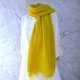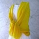 使用槐花(ENJU)的花蕾,以天然植物染法染制出鲜艳黄色的蚊帐织法羊毛长披肩。