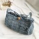 手工日本SASA线莎莎线编织灰蓝斜背侧背包