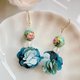 Blue Pom Pom Rose Japanese Tensha Gold Earrings | 长花耳环