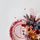 此款运用不同色系素材配上永生满天星,像是新年烟花盛开的情景,让不同的素材争奇斗艳,一起迎接春天。