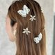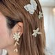 这款复古风格的发夹组合,共三件,以蕾丝蝴蝶为设计主体,点缀着无数颗珍珠。