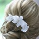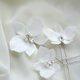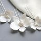 These beautiful hair pins feature white polymer clay orchids with sparkled crystal & pearl centers. These pins come in a set of three, with slightly varying flower sizes ranging from 2.5 inches to 1.5-2 inches.
