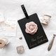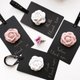 把花放在西洋书法写的卡上再穿上黑色丝带成吊卡款