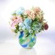 这件玻璃花器的创作理念灵感来自于水的流动与生命的活力。圆润的碗形设计象征着包容与和谐,内部曼妙的蓝绿色漩涡则展现出迷人的动感,仿佛在诉说自然界中的变化。透明的玻璃材质让每一层颜色得以清晰呈现,进一步强调色彩的深度与层次感。这件作品不仅是装饰品,也是一个充满能量的艺术品,邀请观者沉浸于它所传递的动态美感,感受生命的流动与蓬勃。