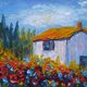一幅传统普罗旺斯风景画,描绘着一间可爱的小屋、丝柏树和缤纷的花朵。美丽的风景一直是我创作灵感的无穷泉源——我非常乐意与您分享!