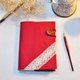 布料+木扣(扣子款式会随布色调整)+布蕾丝+弹性布绳,纤维感满分书皮 X 手作笔记本