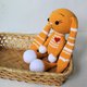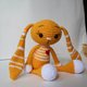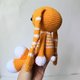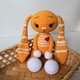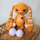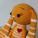 - cute knitted bunny with long ears. the size of the bunny is about 25 cm (9.8 inches). The bunny is crocheted from soft semi-cotton yarn. the toy fits comfortably in the hands of a child.