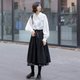PS:虽然是双层半裙,不过内片不全是深灰花纹面料,只是在露出段上方开始拼接花纹面料。