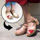 At first, the sandals appear almost white but when you expose them to the sun (the color reacts with UV in sunlight), the fun color shows up revealing funky pattern on the sandals.