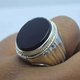 男士戒指 手工制作 深棕色 黑色玛瑙戒指 - 阿盖克戒指 925纯银手工戒指