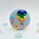 描绘了搭乘缤纷热气球在空中漫步的景象。