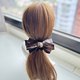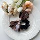 使用异材质的两款织带制作出大型蝴蝶结,搭配韩国进口绒布缝成的大肠圈,属于大人可爱的发圈,无论上班或休闲聚会都适合配戴。