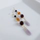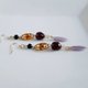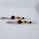 这款别致的长款耳环/耳夹,以较大的紫水晶色调火光抛光捷克珠为主体,搭配尺寸略小的、带有秋日气息的黄水晶色调火光抛光捷克珠,在椭圆形圈上摇曳,并缀以锐利的捷克剑形珠,整体造型独特。
