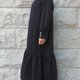 袖口处为10厘米的长型设计,一字排开的精致贝壳钮扣,散发出古典且温柔的氛围。低腰处的衔接,搭配长达40厘米的抓皱,营造出份量感,能巧妙平衡整体比例。