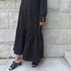 这款洋装的特色在于袖口一排排精致的小巧贝壳钮扣,以及低腰设计的线条。