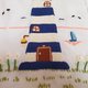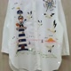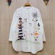 手工刺绣衬衫、亚麻、灯塔、狐狸、船、海洋、大海