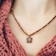 秋日棕花项链,以独特描金棕花捷克珠为主角,与复古黄铜珠交织,创造出可爱复古气息的手绳,链体可以自由调节长度,自行决定要当成颈链或是长链,简约好搭配,完美融入你美美的秋装💖