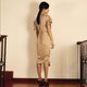 连衣裙|后腰缩象根,穿感舒适直身线条|盖膝长度|丝感顺滑|袖子接褶飘逸|缩褶立体剪裁