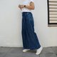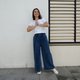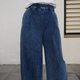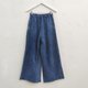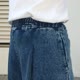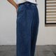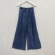 棉质靛蓝海军蓝染色石洗宽裤,有 2 个口袋。松紧腰部采用柔软棉质布料,非常舒适。剪裁精美的宽裤,可爱的设计,酷炫的靛蓝染色石洗。
